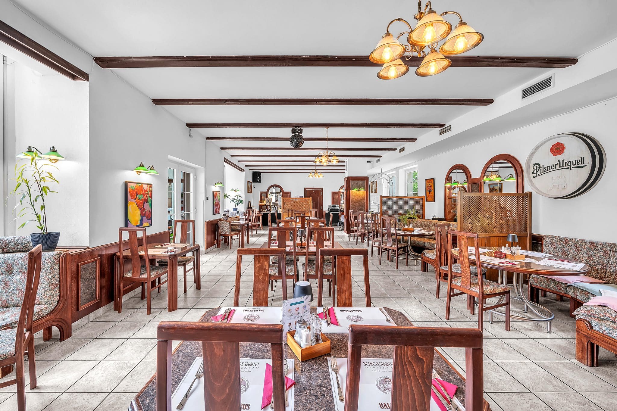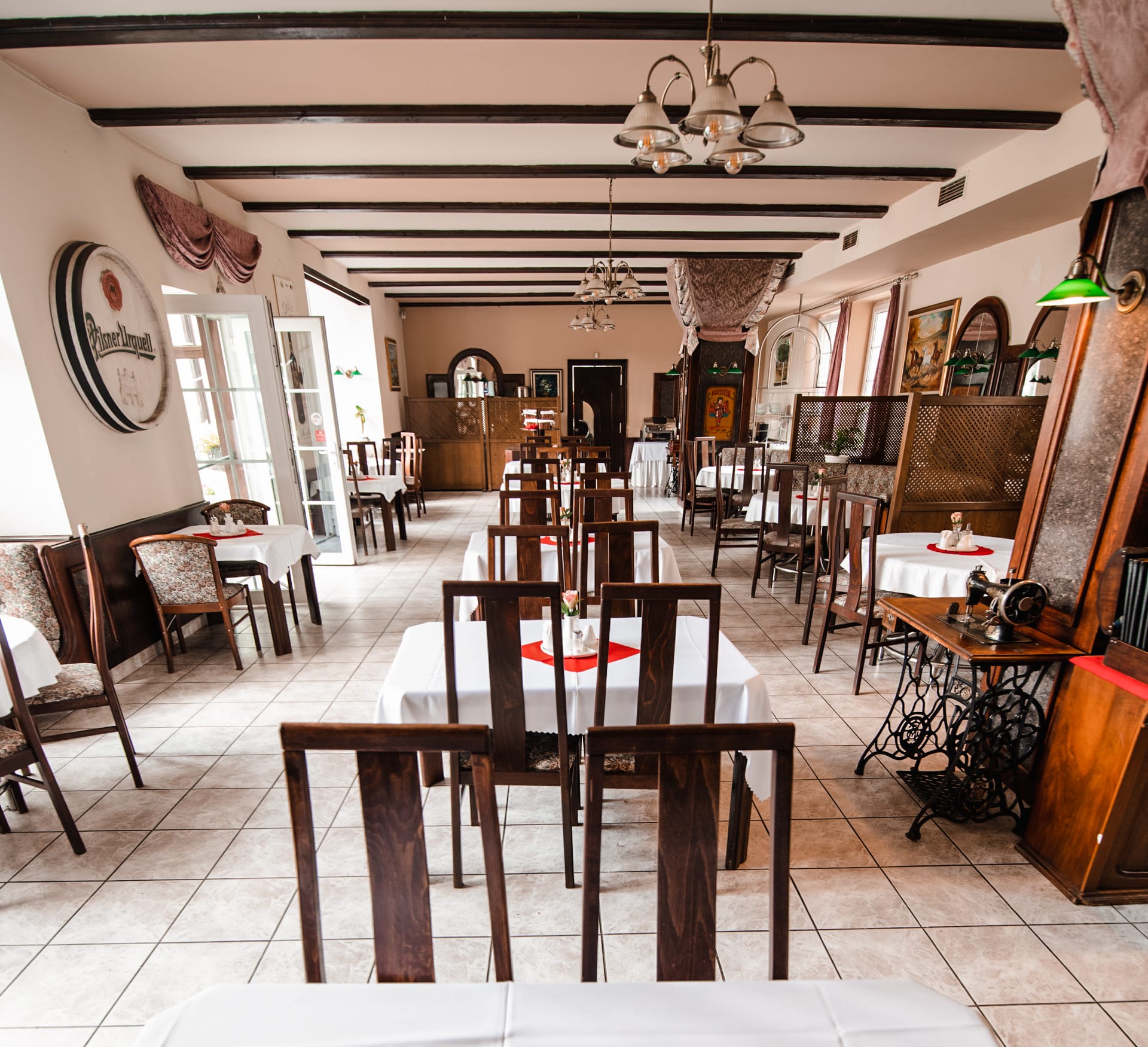Restaurace má 80 míst k sezení, při vhodném počasí též letní terasu.